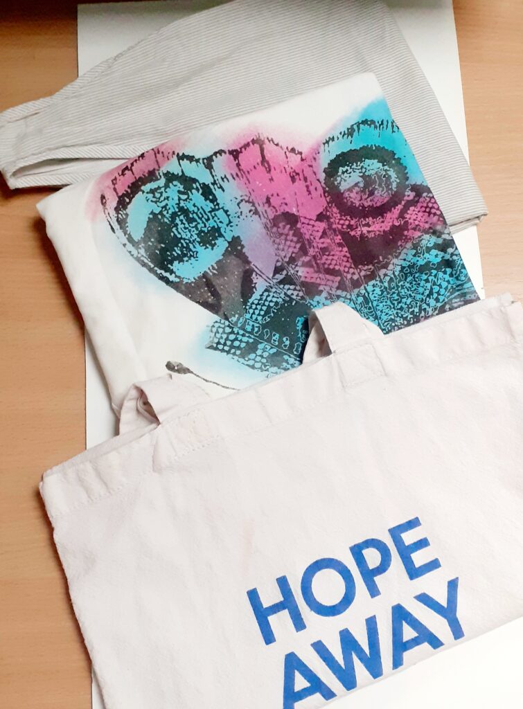 -z trzech rzeczy widocznych na zdjęciu najlepszy efekt uzyskały torby eko, które były wykonane ze 100% bawełny, ich nowy kolor był najbardziej jednolity